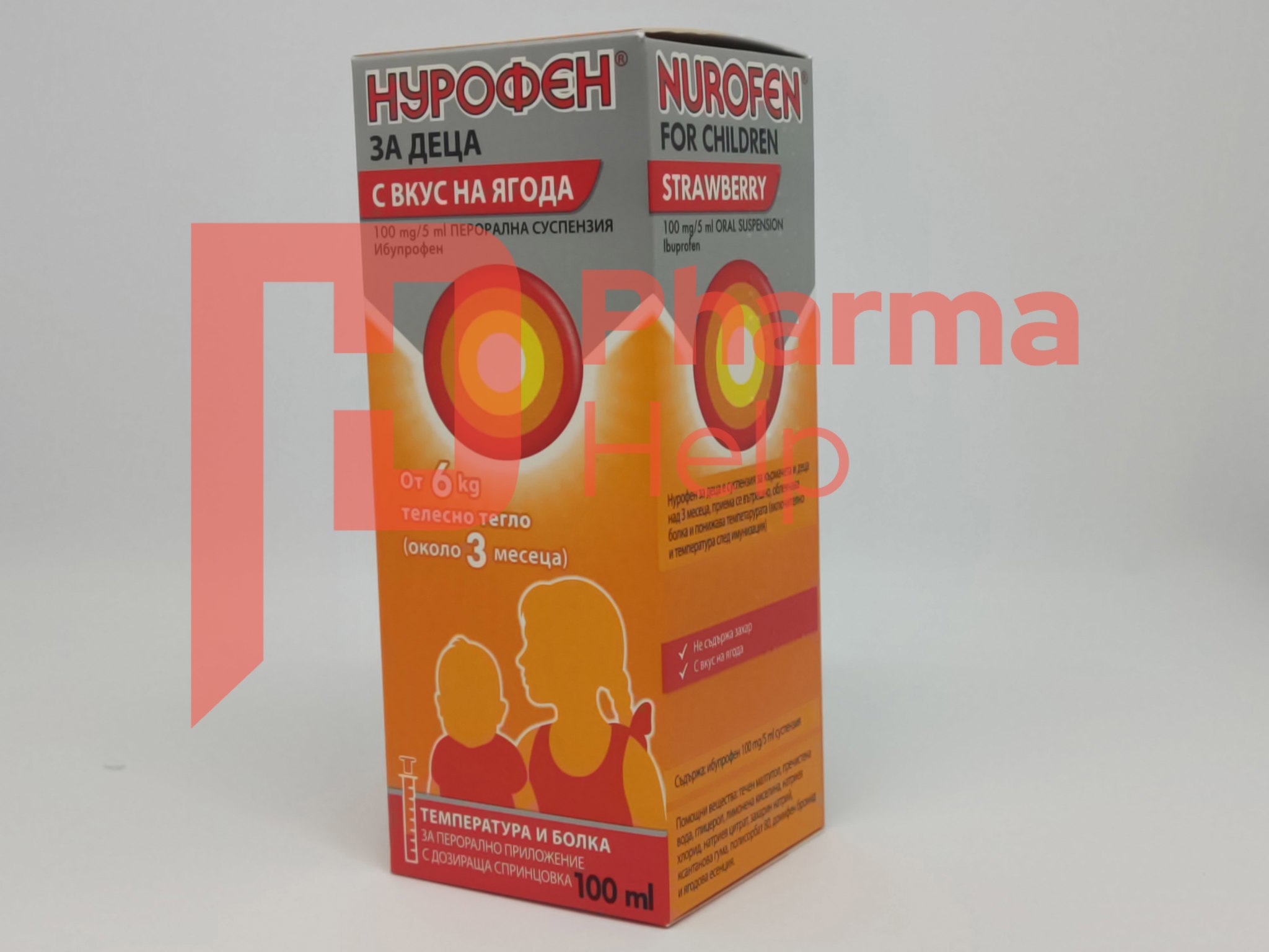 Нурофен за деца ягода, Перорална суспензия, 100 mg/5 ml - 100 ml, Опаковка: 1